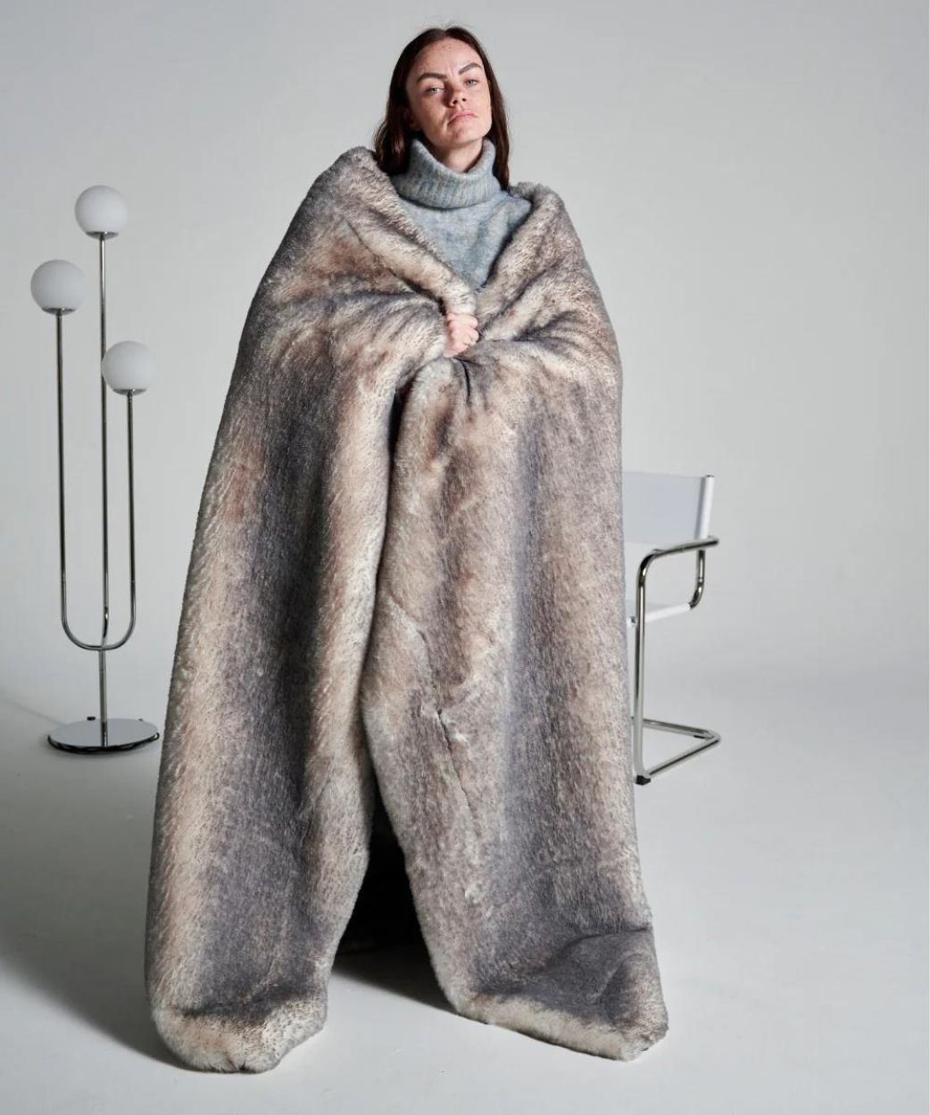 De langharige imitatiebontstructuur geeft het plaid een volle, warme uitstraling. De vezels zijn soepel en dicht geweven, waardoor een rijke textuur ontstaat die aangenaam aanvoelt en de warmte goed vasthoudt. De neutrale grijstint past moeiteloos in elk interieur, van klassiek tot modern.