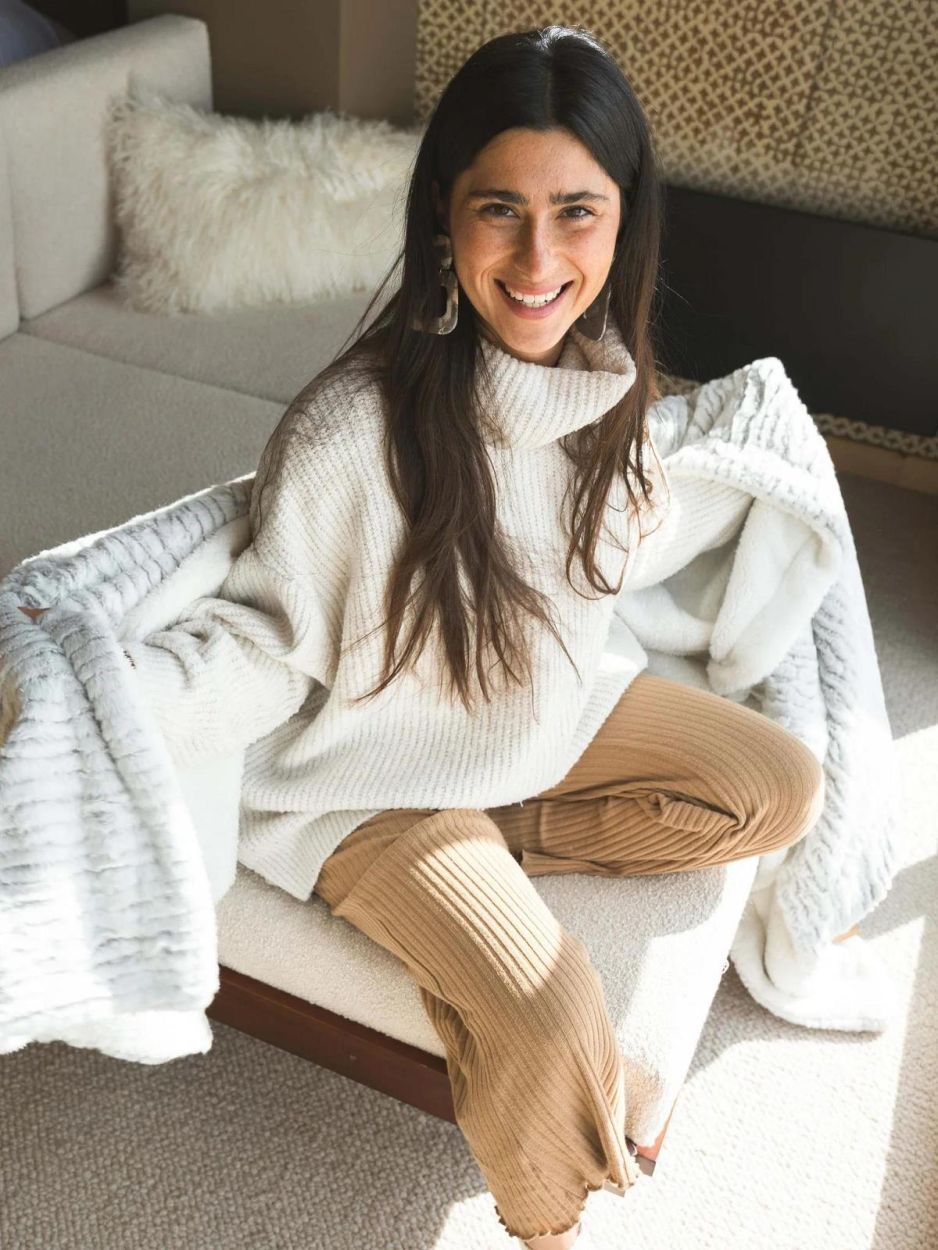 Met zijn royale 150 x 200 cm en volle dikte biedt de Nougatine Plaid een omhullende warmte, ideaal voor koude avonden of als decoratief accent in de woonkamer of slaapkamer.