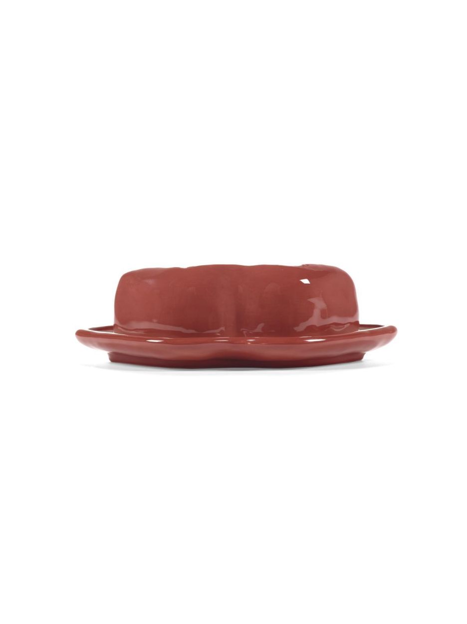 Deze boterdoos (of toch niet) in aardewerk is een directe afgeleide van het eerdere Lips-bord, maar nu voorzien van een deksel. De herkenbare, rode lippen blijven centraal staan – een iconisch motief uit het surrealisme, maar ook een terugkerend element in de sieraden en objecten van Wouters & Hendrix.