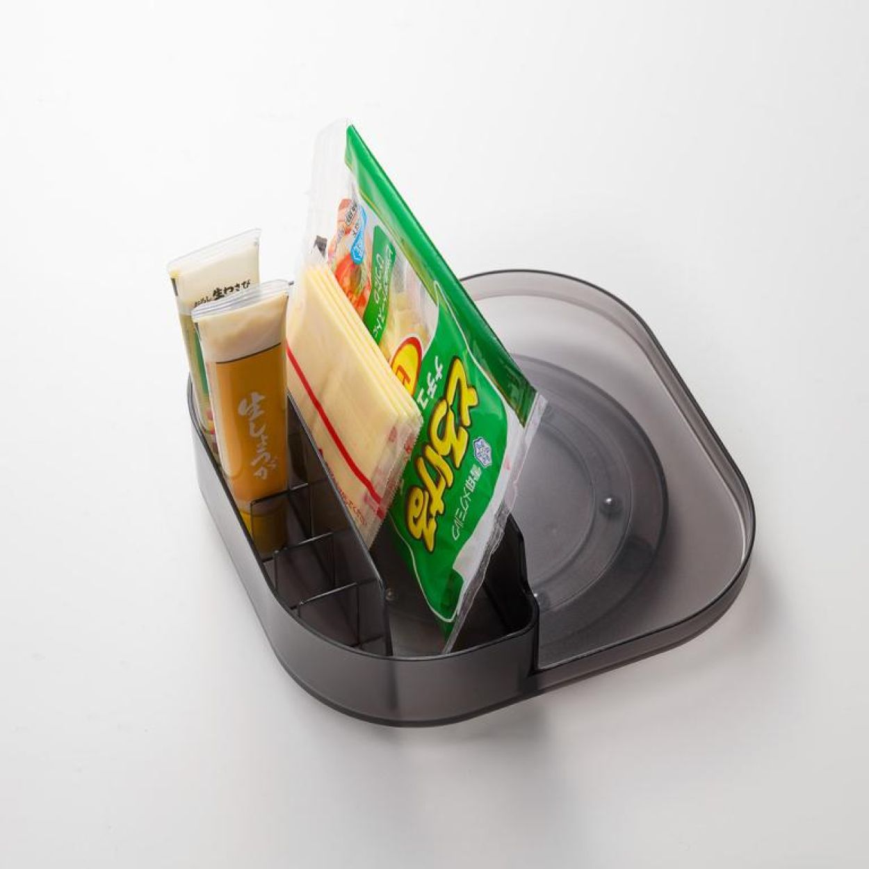 Het draaibare opbergbakje Tower van Yamazaki maakt het eenvoudig om kleine items overzichtelijk te bewaren in de koelkast of keukenkast. Dankzij de 360° draaifunctie heb je moeiteloos toegang tot alles, zelfs wat achteraan staat. De tray heeft één groter en zes kleine vakken voor optimale organisatie, en een antislipbodem zorgt voor stabiele plaatsing.