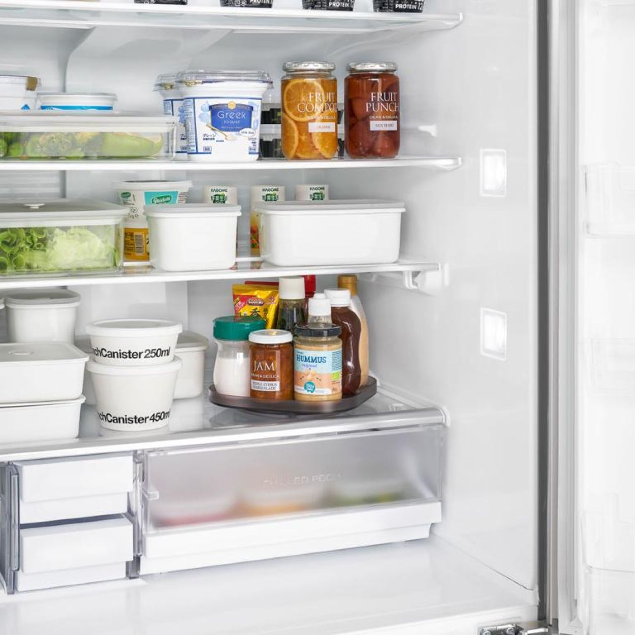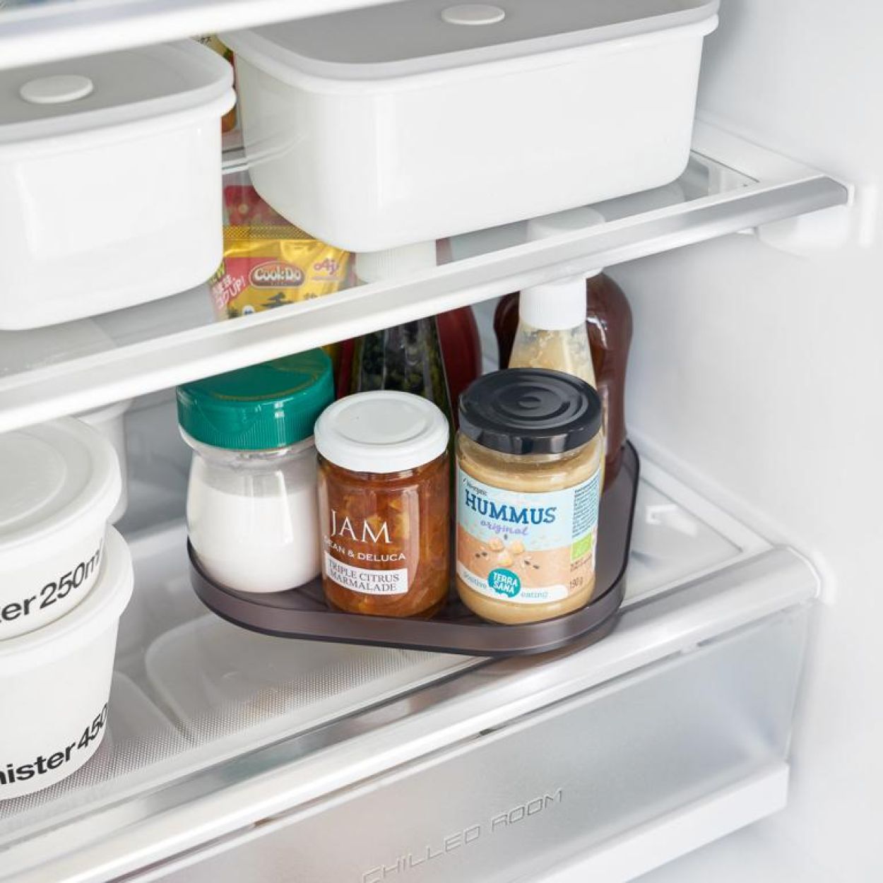 Het draaibare opbergbakje Tower van Yamazaki is een compacte, platte tray die extra overzicht creëert in de koelkast of keukenkast. Dankzij de 360° draaifunctie zijn ook items achteraan moeiteloos bereikbaar. Het lage ontwerp bespaart ruimte en zorgt dat alles netjes geordend en binnen handbereik blijft.